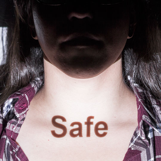 In this series, each subject provides a label that was ascribed to him or her by others, the text of which is then projected onto their body using a portable projector. The subject is then photographed in a manner akin to a formal portrait. Only the bottom half of the face is in the frame and that begins to fall to black. The prominent showing of the label then becomes the main focal point, and ultimately, the identity of the individual. The label must be one ascribed to the subject by others, not by him or herself. Self-ascribed labels become an what an individual wants to project, whereas externally ascribed labels take over a person’s identity in ways they cannot control.